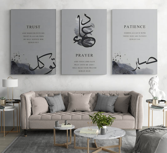 TRUST - PRAYER - PATIENCE INSPIRING ISLAMIC CALLIGRAPHY