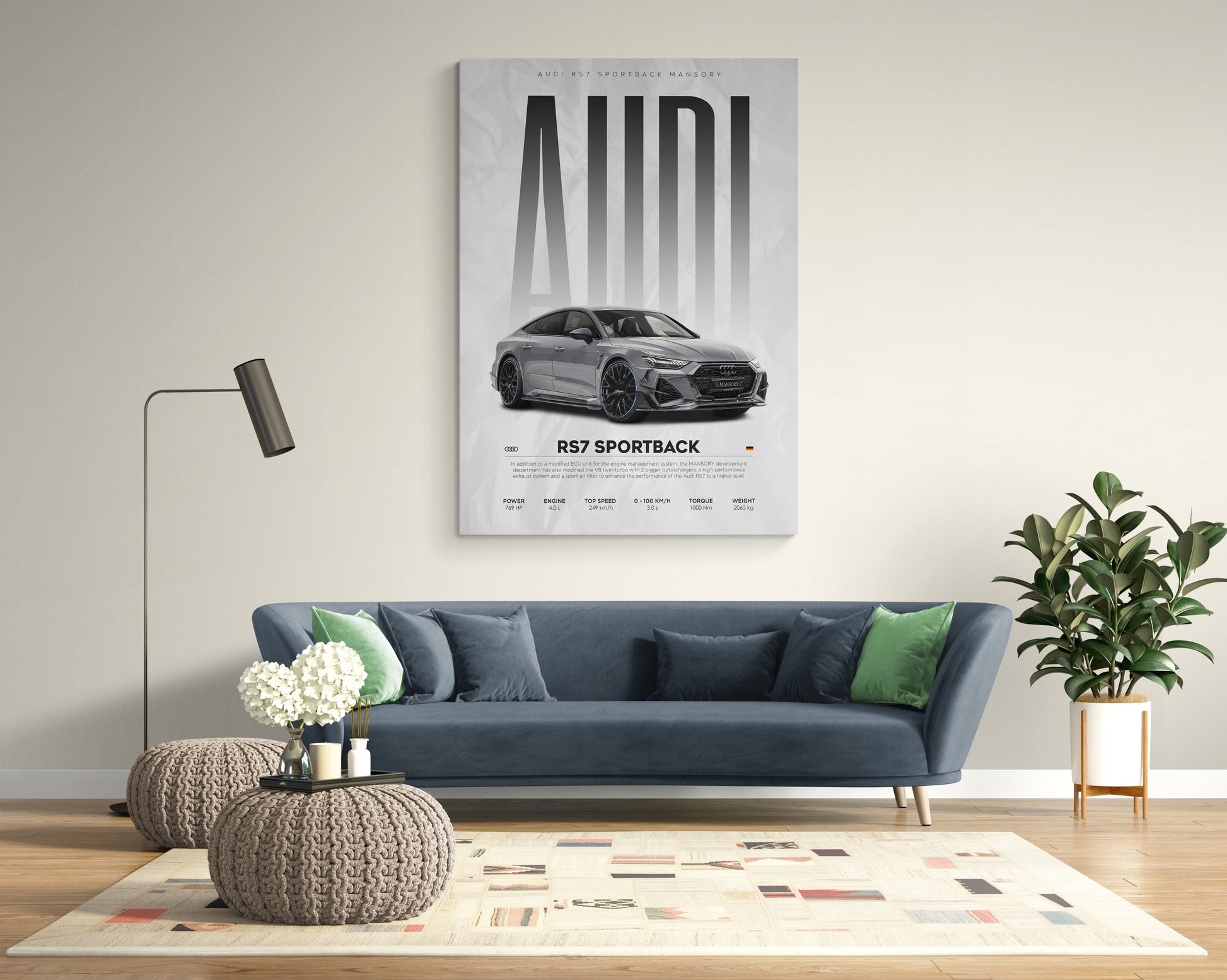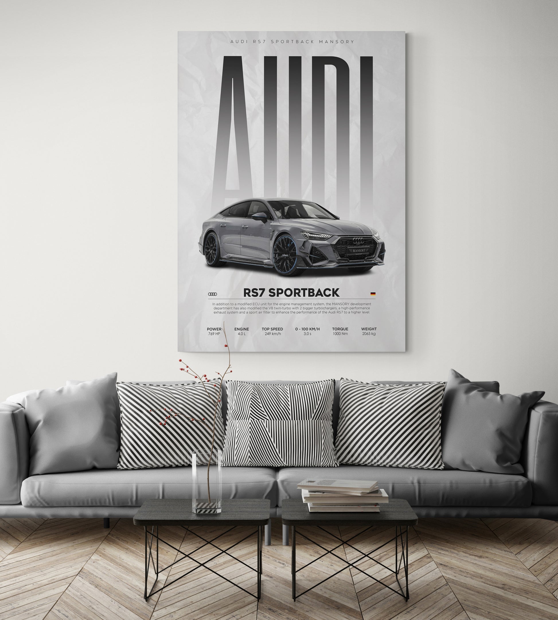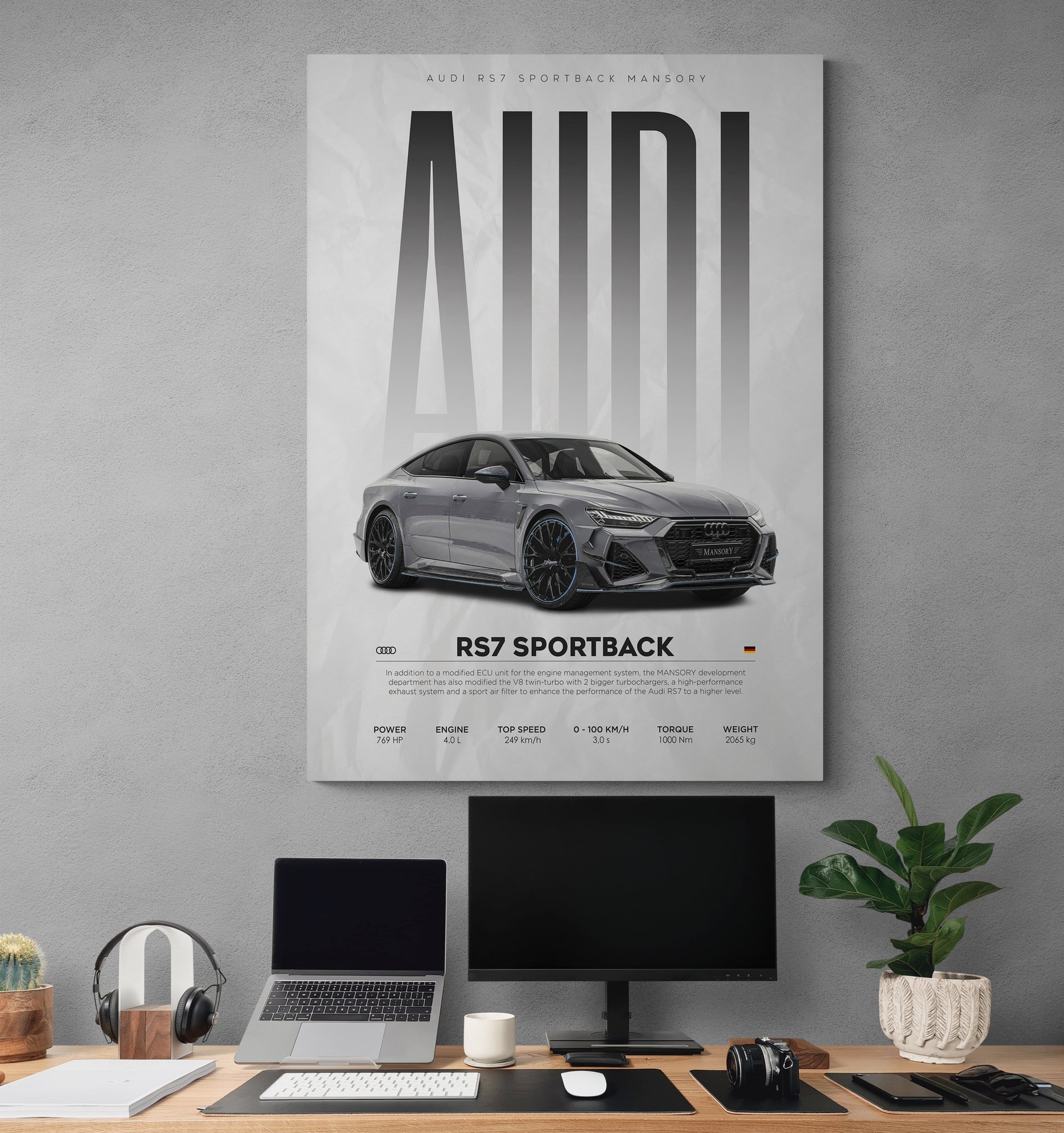 This poster showcases the iconic Audi RS7 Sportback with stunning detail on high-quality canvas.