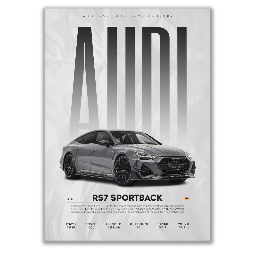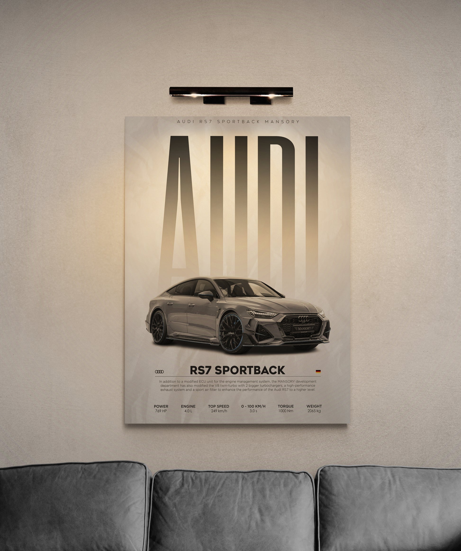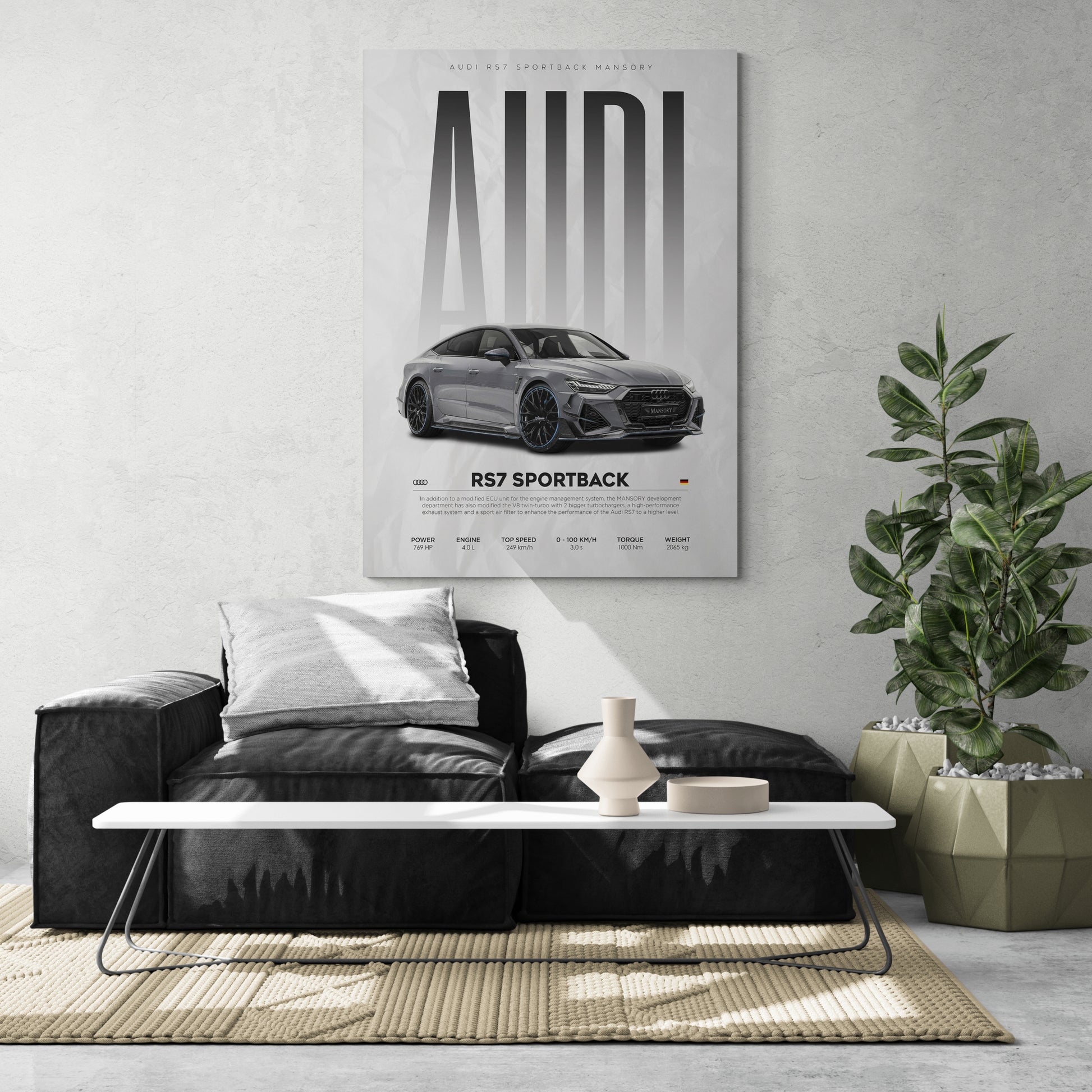 This poster showcases the iconic Audi RS7 Sportback with stunning detail on high-quality canvas.