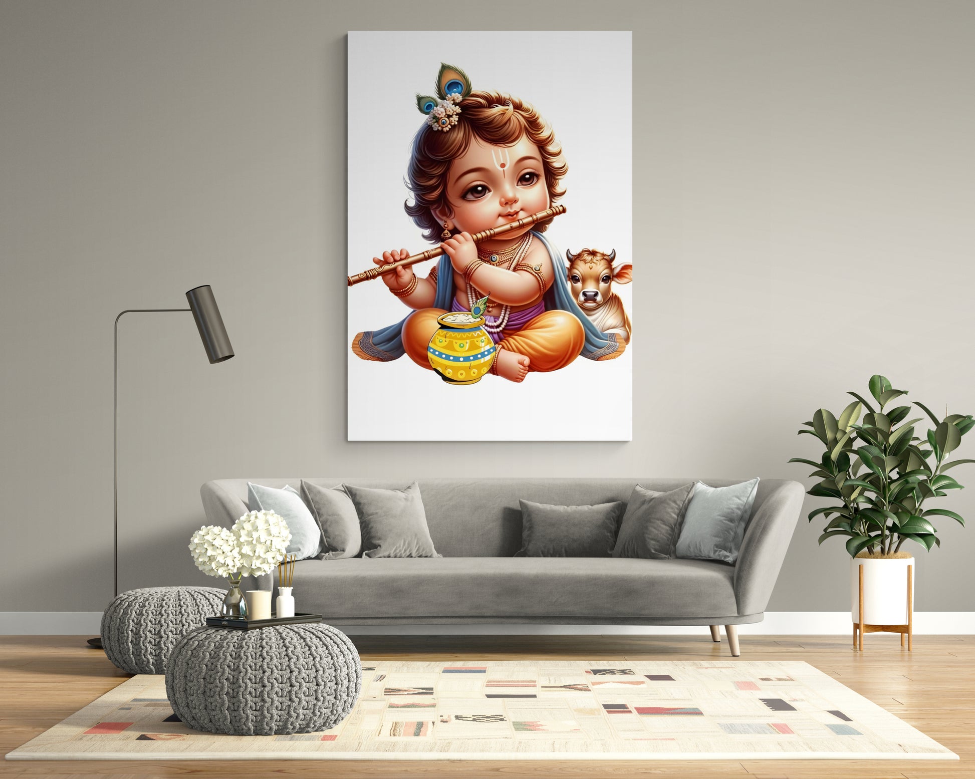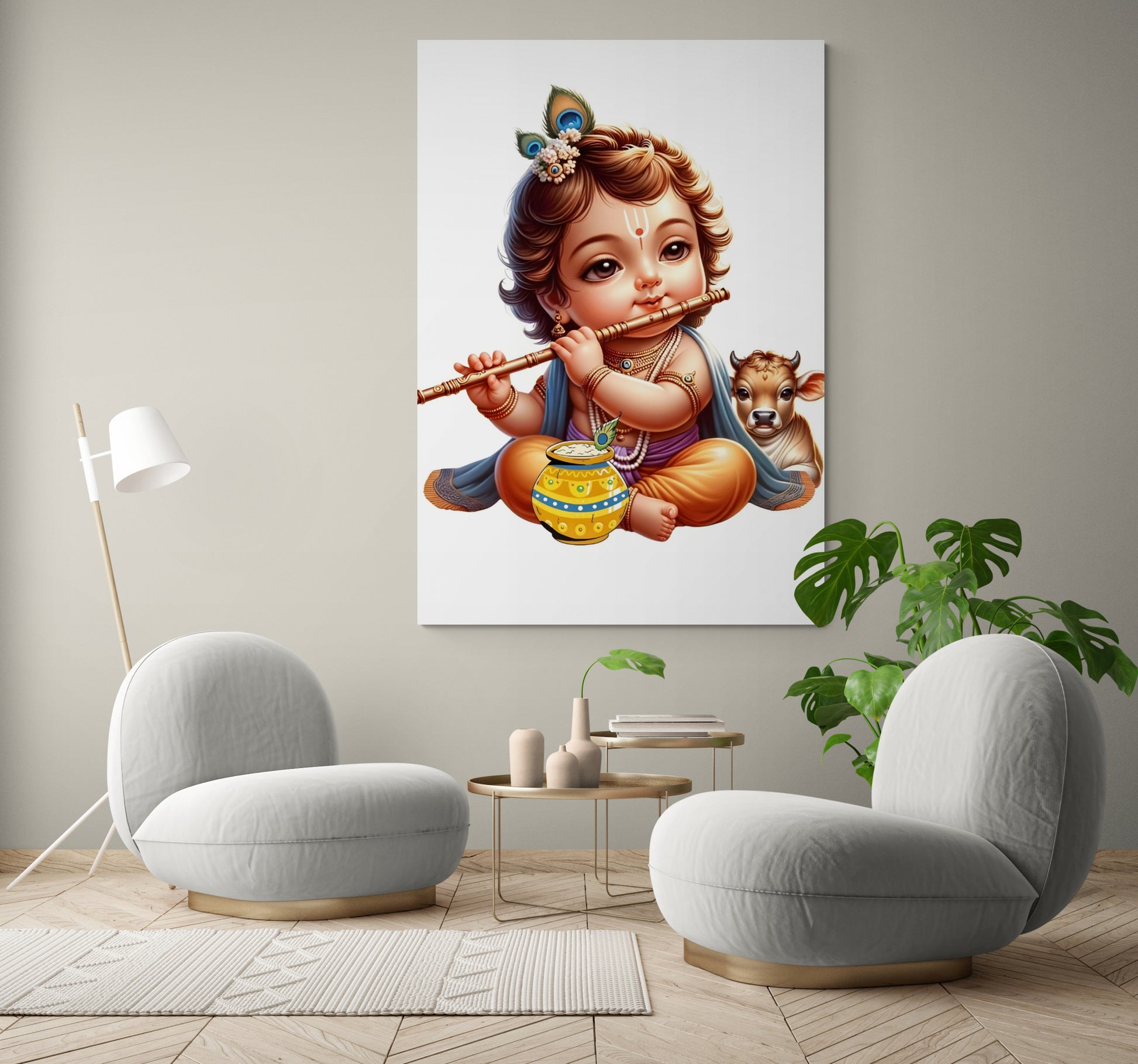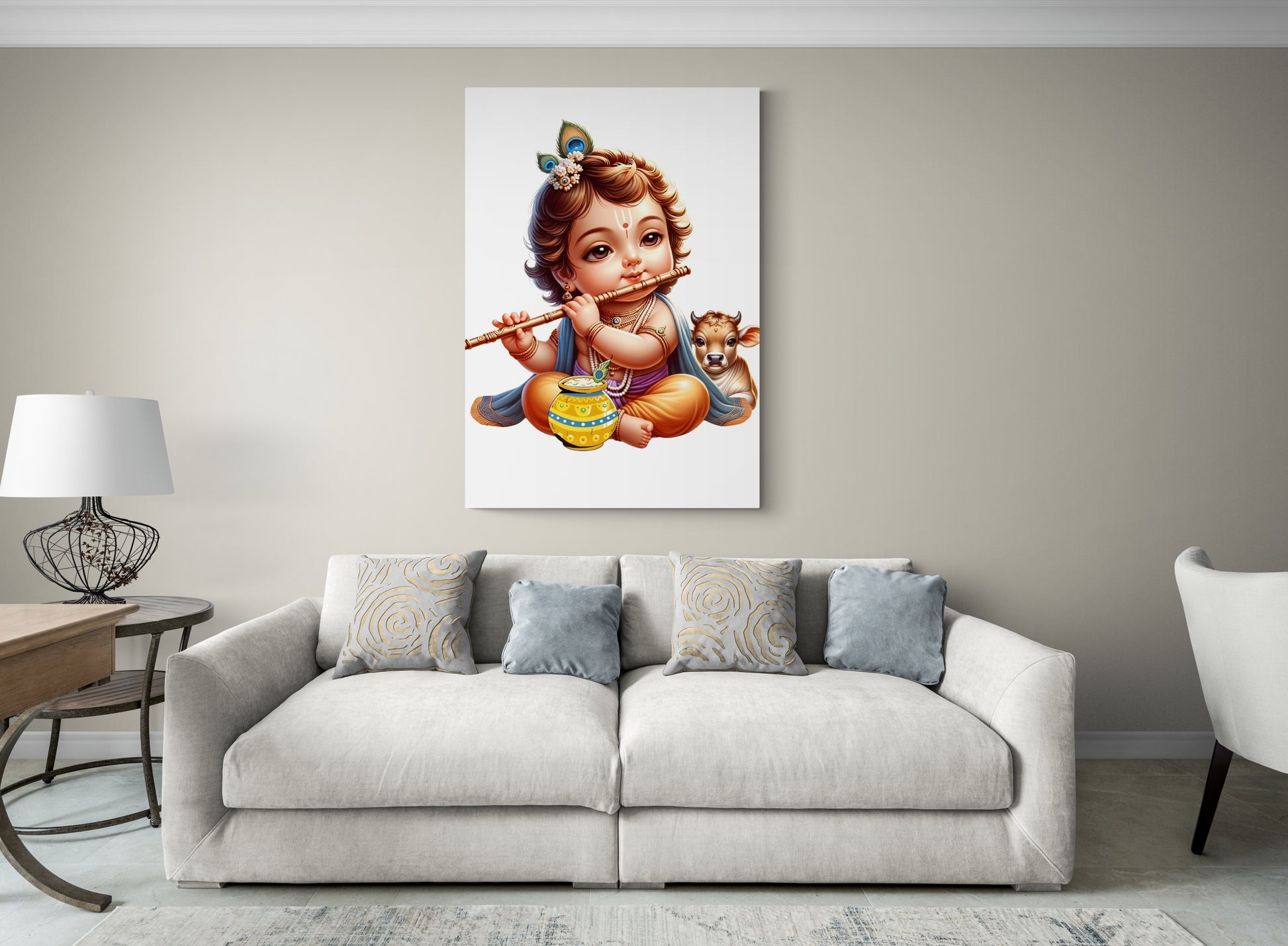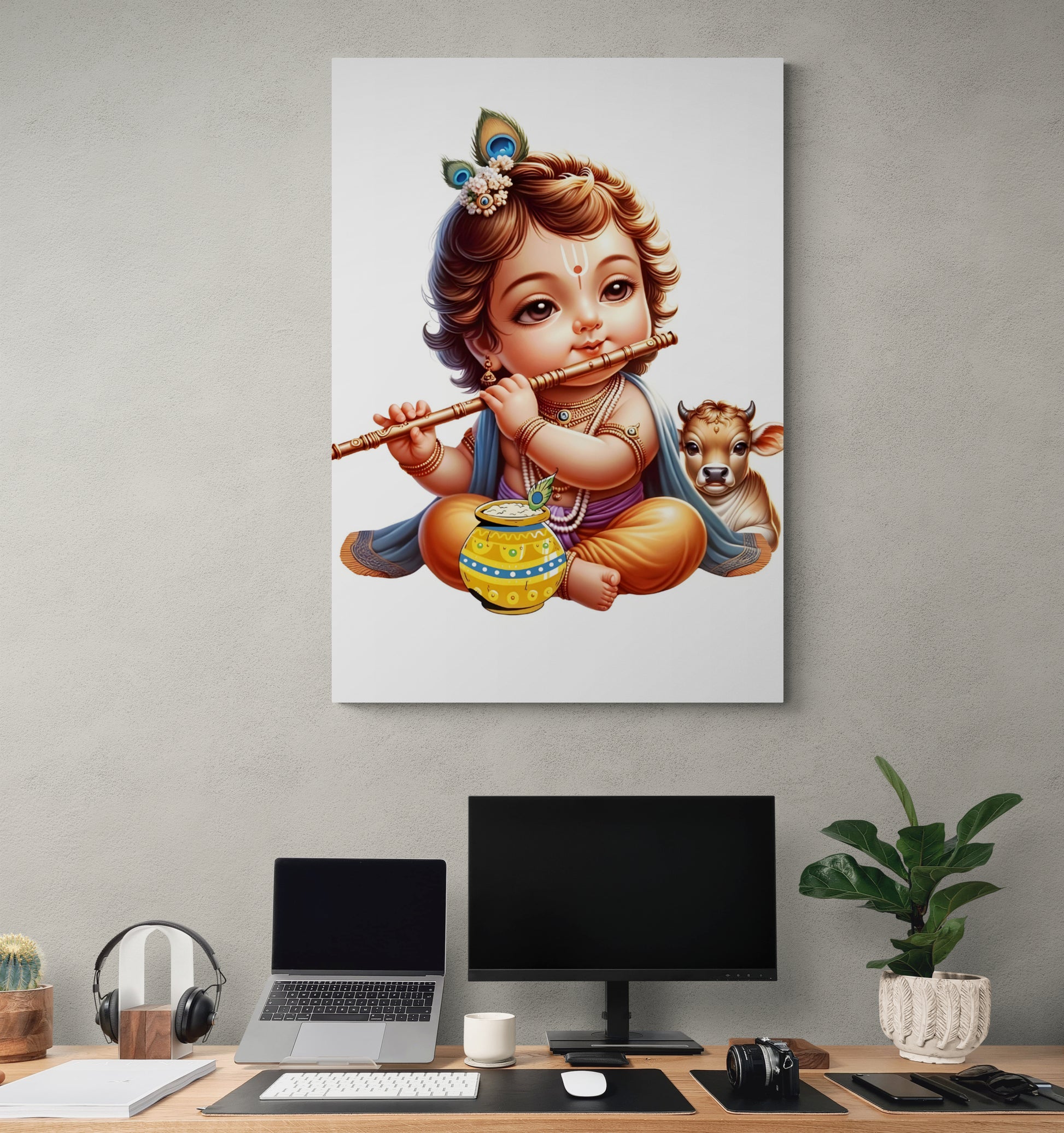 Introducing our Bal Gopal Canvas – a divine depiction of the beloved deity Lord Krishna as Bal Gopal, the sweet and charming child form.